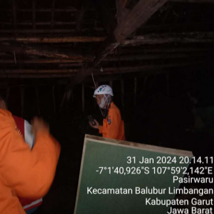 BPBD Kabupaten Garut berkoordinasi dengan pemerintah setempat, melakukan asesmen, dan memberikan bantuan berupa terpal dan karung sebagai langkah awal penanggulangan bencana ini.