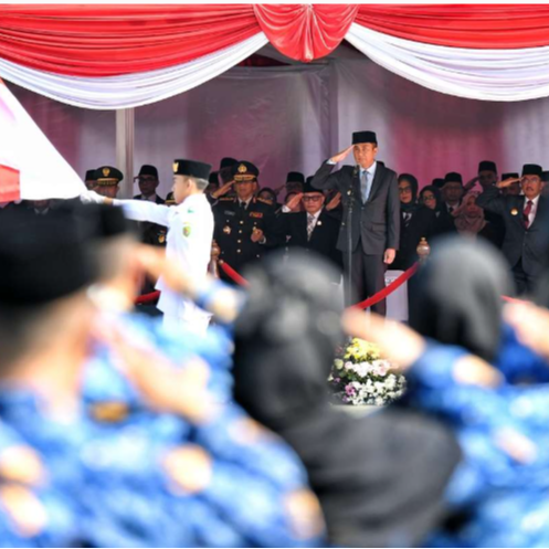 Dalam upacara itu, Bey Machmudin membacakan sambutan Menteri Pemuda dan Olahraga Republik Indonesia Ario Bimo Nandito Ariotedjo.