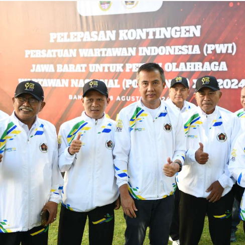 Penjabat Gubernur Jawa Barat Bey Machmudin melepas kontingen Persatuan Wartawan Indonesia (PWI) Jabar untuk mengikuti Pekan Olahraga Wartawan Nasional (Porwanas) XIV Tahun 2024 di Kalimantan Selatan.