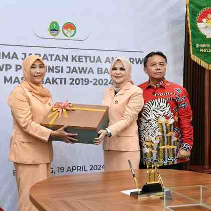 Sekretaris Daerah Provinsi Jawa Barat Herman Suryatman menghadiri acara Serah Terima Jabatan Ketua Antarwaktu Dharma Wanita Persatuan (DWP) Provinsi Jabar Masa Bakti 2019-2024 di Gedung Negara Pakuan,...