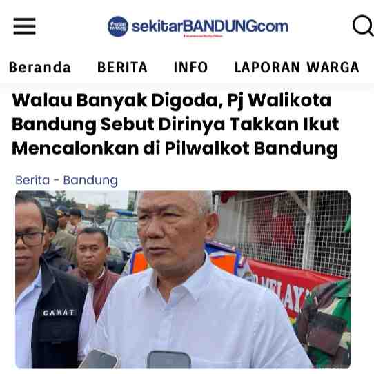 Komisi Pemilihan Umum (KPU) telah memulai tahapan pendaftaran Calon Wali Kota dan Calon Wakil Wali Kota Kota Bandung pada 27-29 Agustus 2024 ini.Menanggapi hal tersebut, Pj Wali Kota Bandung Bambang T...