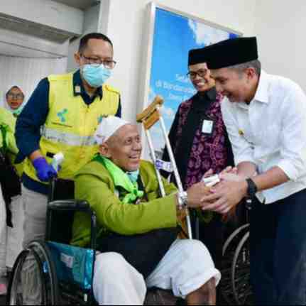 Sebanyak 440 Jemaah Haji Kloter 1 Embarkasi Kertajati asal Kabupaten Subang tiba di Bandara Internasional Jawa Barat (BIJB) Kertajati, Kabupaten Majalengka, Minggu (23/6/2024) pukul 07:40 WIB. Penjaba...