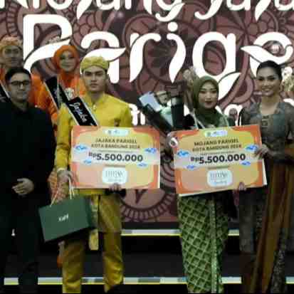Darra Arnelita Morena dan Ahmad Firdaus Mirza keluar sebagai Mojang Jajaka Pinilih Kota Bandung 2024 pada Grand Final Mojang-Jajaka Kota Bandung di The Amerra Hotel, Jalan Gegerkalong (28/9/2024).Moja...