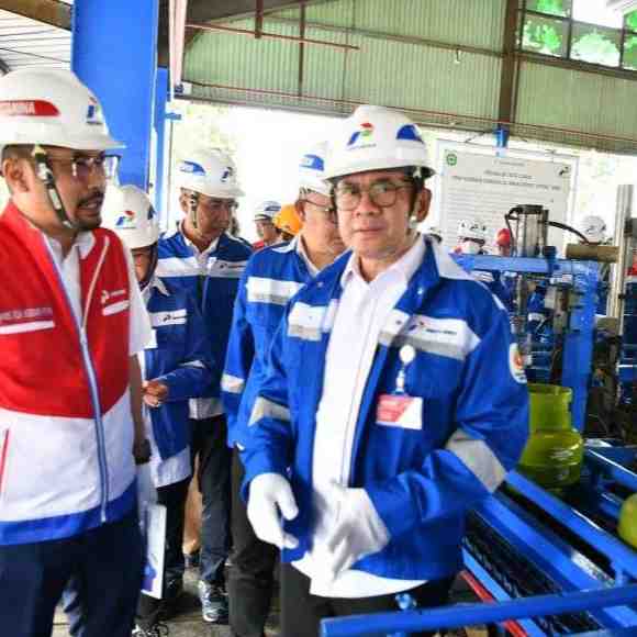 Penjabat Gubernur Jawa Barat Bey Machmudin mendampingi Menteri Perdagangan Budi Santoso memantau Stasiun Pengisian dan Pendistribusian Bulk Elpiji (SPBE) PT Patra Trading di Padalarang, Kabupaten Band...