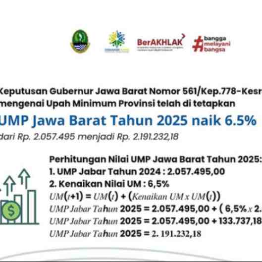 Pemda Provinsi Jawa Barat mengumumkan Upah Minimum Provinsi (UMP) Tahun 2025 naik sebesar 6,5 persen, dan Upah Minimum Sektoral Provinsi (UMSP) naik 7 persen. Kenaikan tersebut sesuai dengan Peraturan...