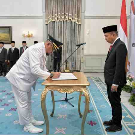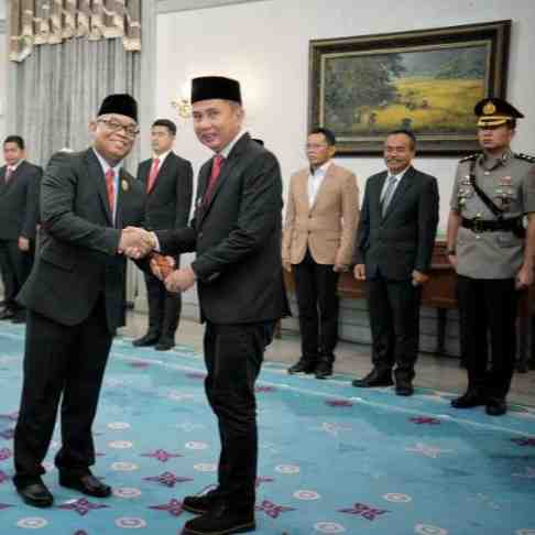 Penjabat (Pj.) Gubernur Jawa Barat Bey Machmudin melantik Soni Harison sebagai Pj. Wali Kota Banjar di Gedung Pakuan, Kota Bandung, Rabu (11/12/2024).Pelantikan tersebut berdasarkan Keputusan Menteri ...
