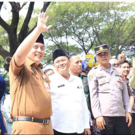 Sekretaris Daerah Dedy Supriyadi bersama dengan Kepala Kantor Kementerian Agama Kabupaten Bekasi, juga unsur dari Forkopimda melepas 440 calon jemaah haji Kabupaten Bekasi 1445 Hijriah.Kegiatan berlan...