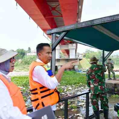 Sekretaris Daerah Provinsi Jawa Barat Herman Suryatman meninjau kondisi Sungai Citarum di kawasan Jembatan Babakan Sapan (BBS) Batujajar, Desa Selacau, Kecamatan Batujajar, Kabupaten Bandung Barat, Se...