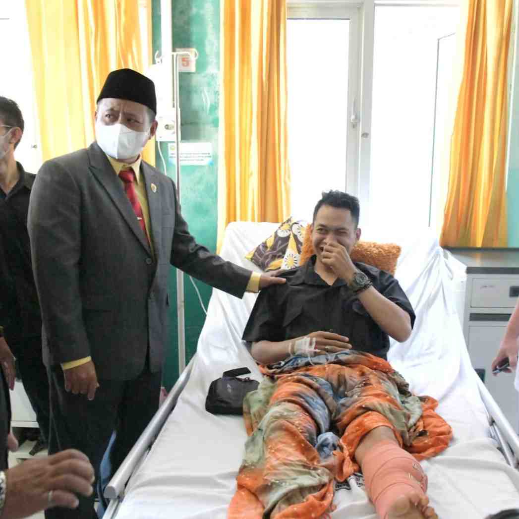 KABUPATEN GARUT -- Wakil Gubernur Uu Ruzhanul Ulum menjenguk pengemudi ojek online, Muhammad Bagus Hidayatulloh, yang mengalami patah tulang kaki selama 10 tahun di RSUD dr. Slamet Garut, Kabupaten Ga...